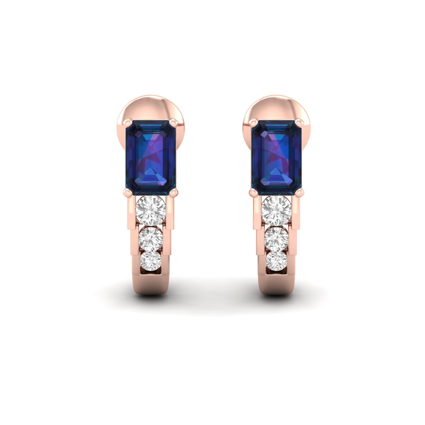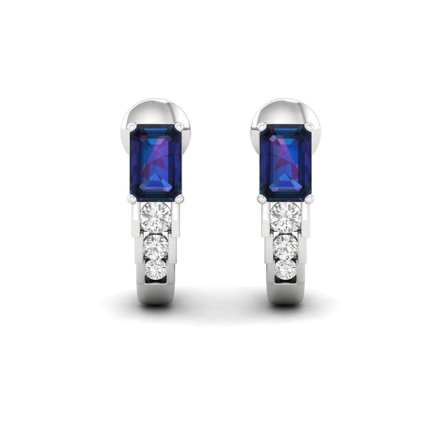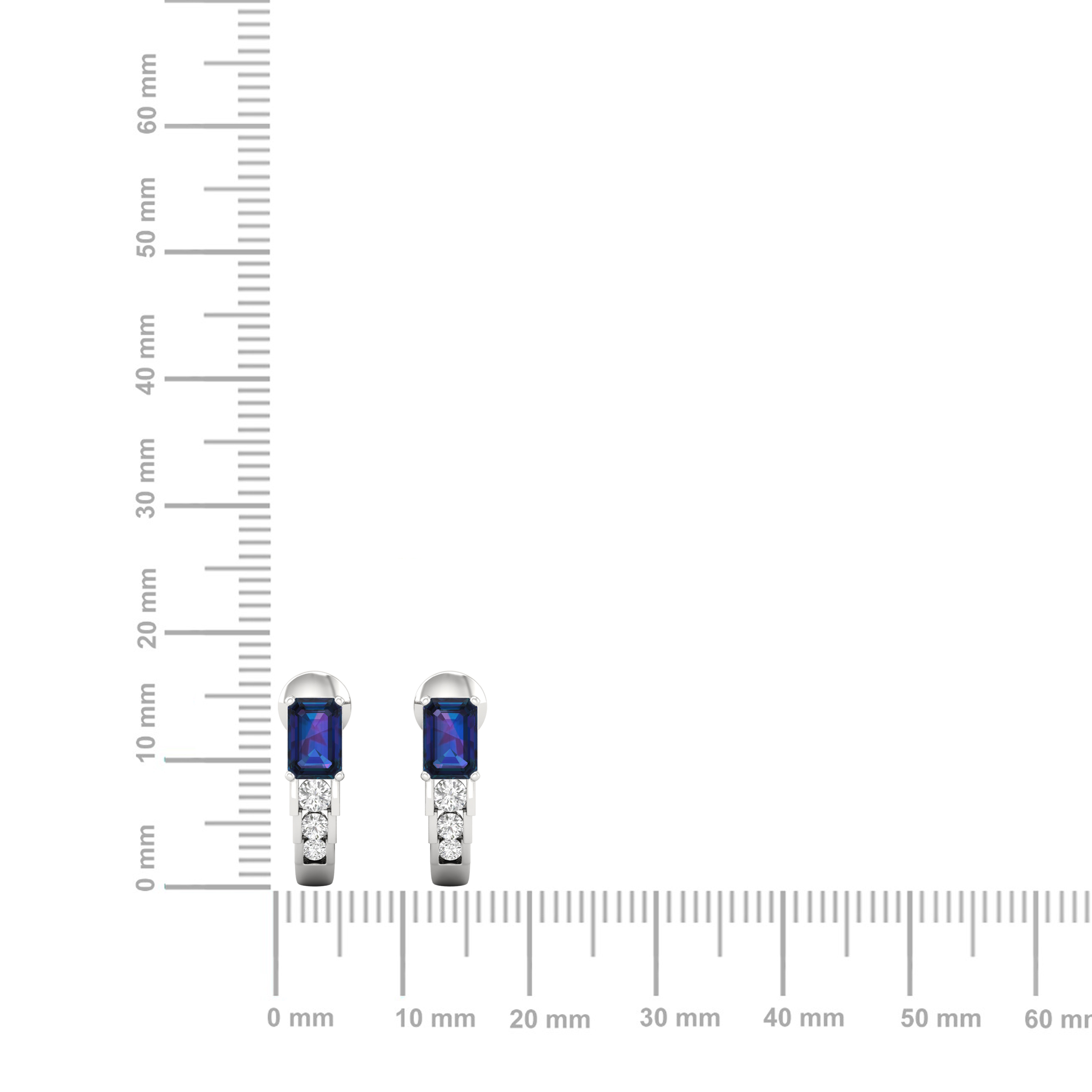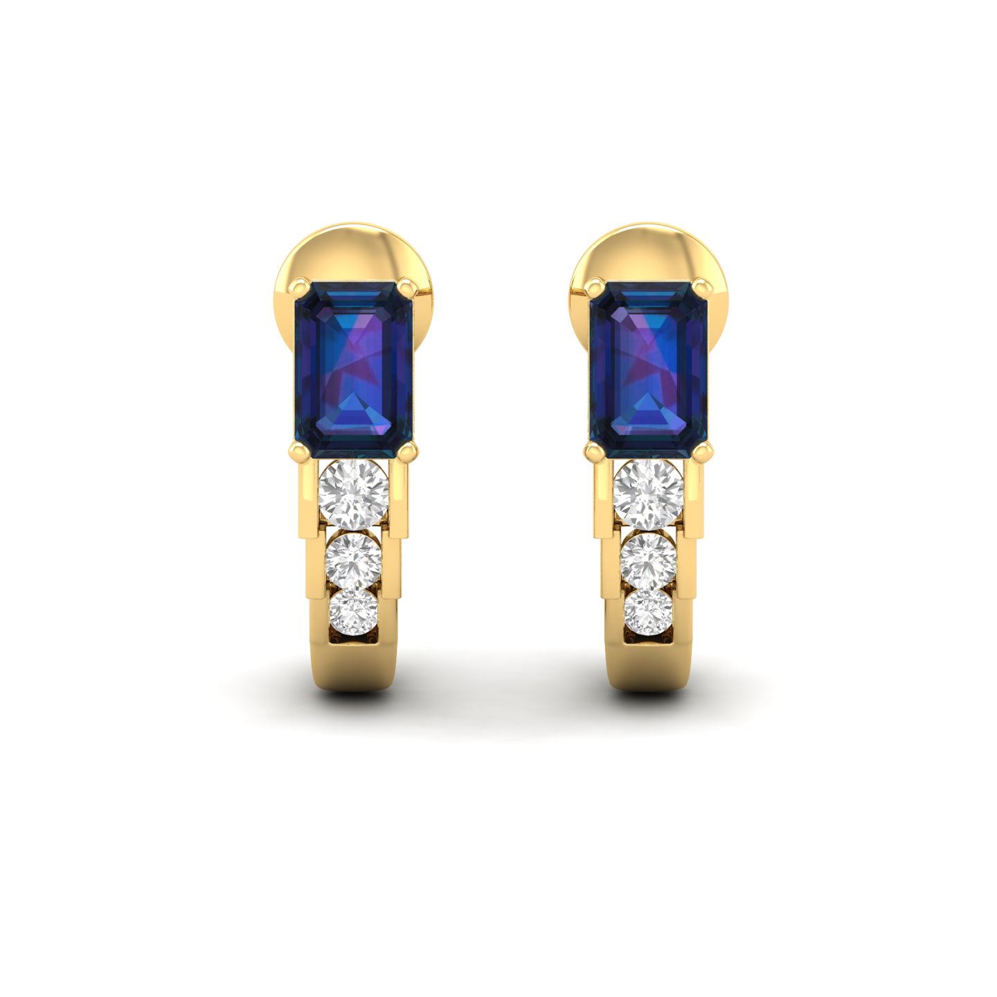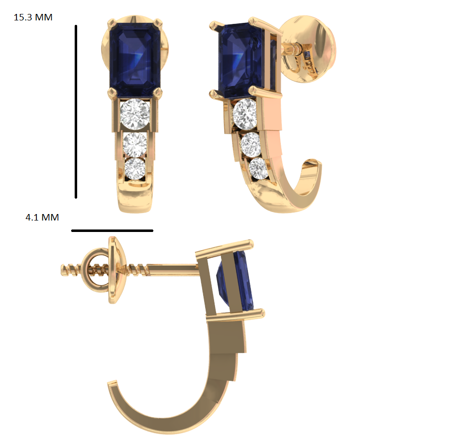0.25Ct Emerald Cut Sapphire Diamond 18k Gold Hoop Earrings