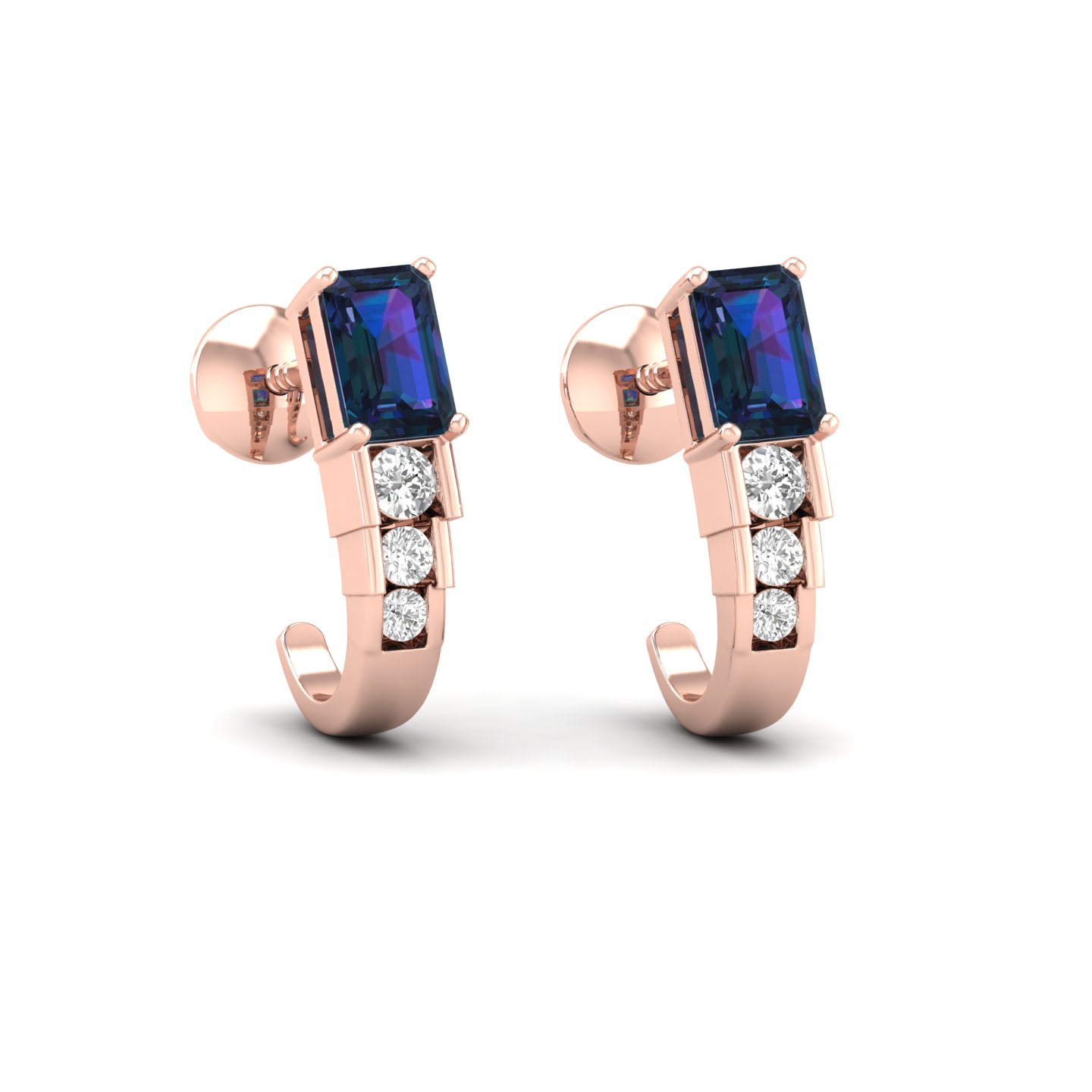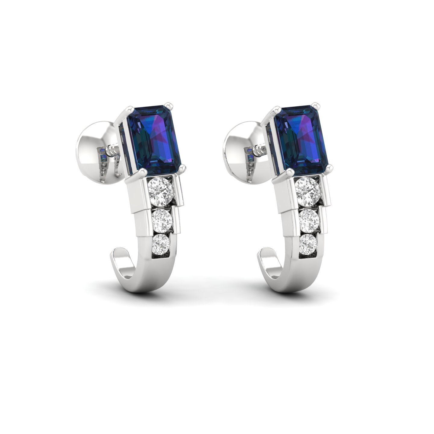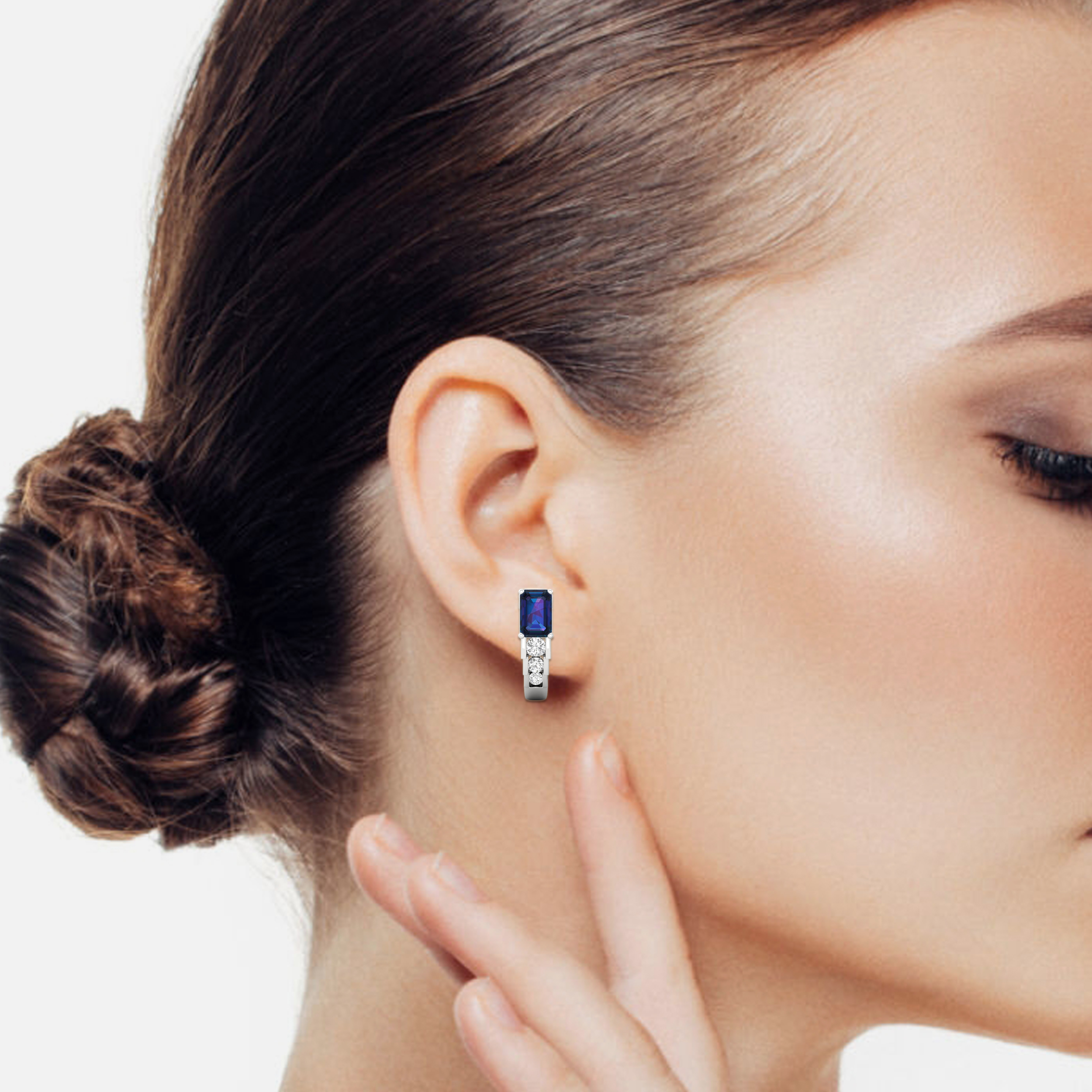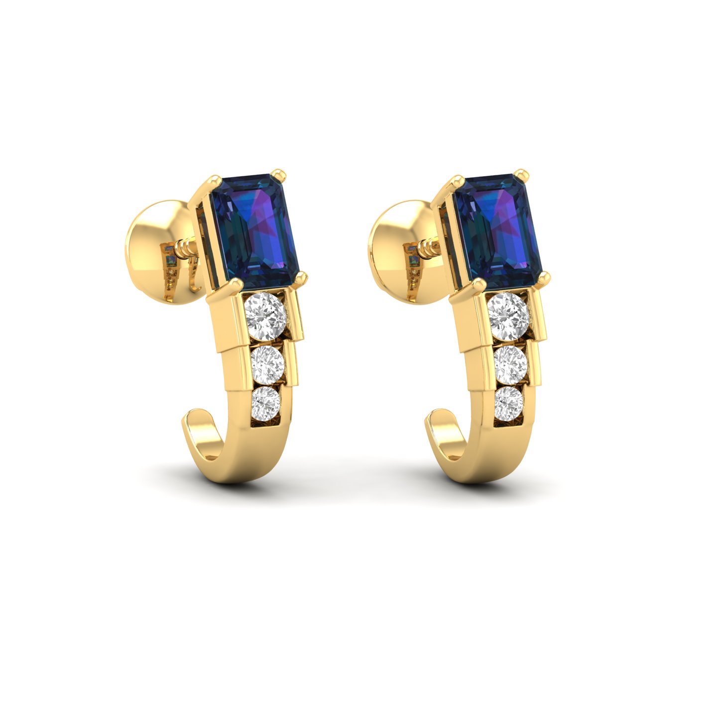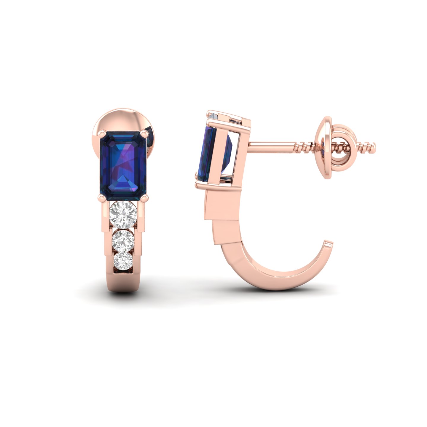 0.25Ct Emerald Cut Sapphire Diamond 18k Gold Hoop Earrings