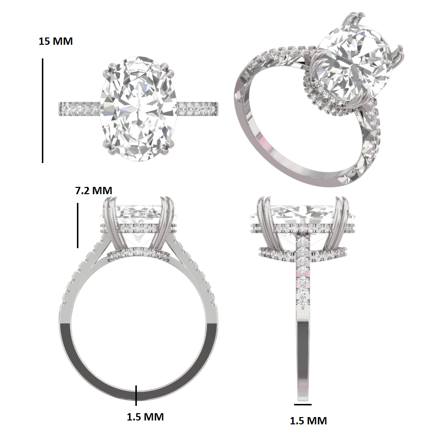 | Diamond Ct | 0.48TCTW , ( Oval Cut Moissanite Size 15*11 ) | |